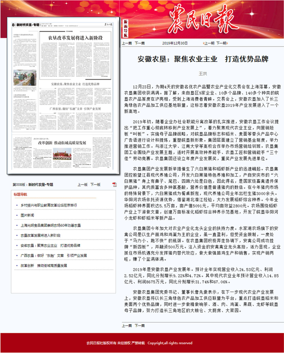 安徽日报农村版:安徽农垦打造产业发展新高地