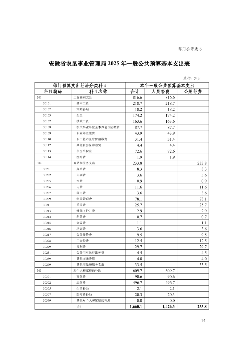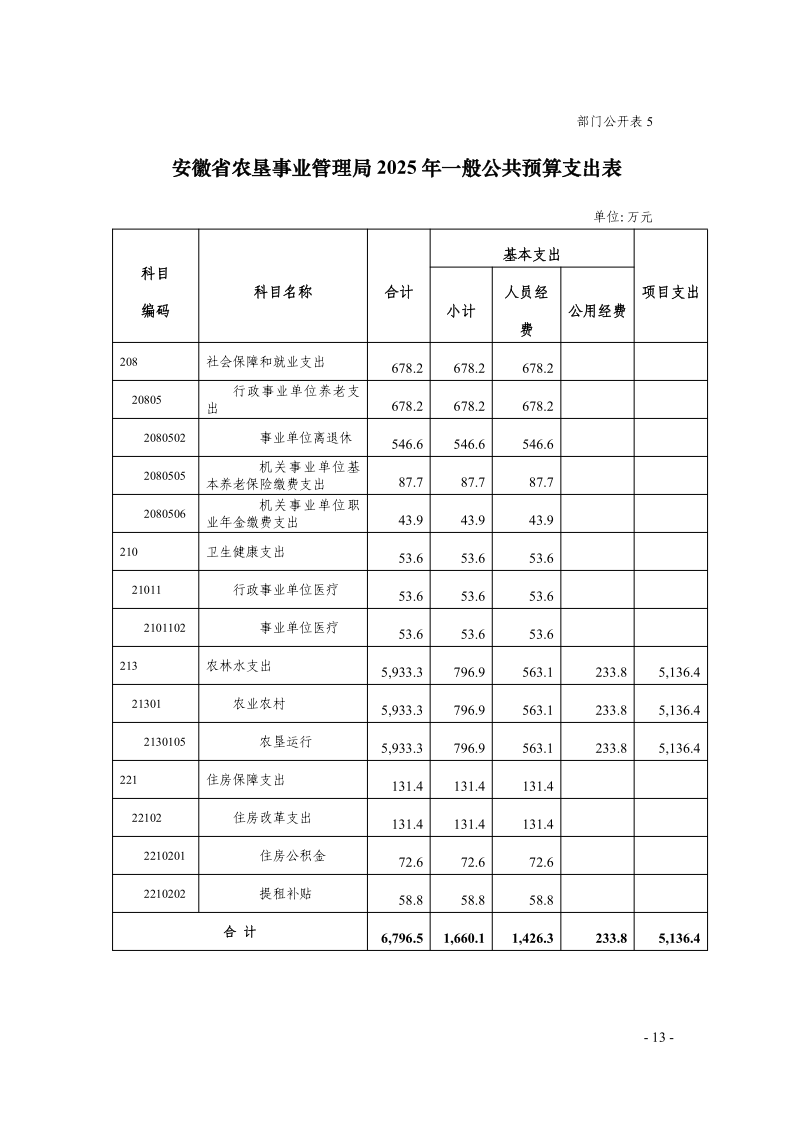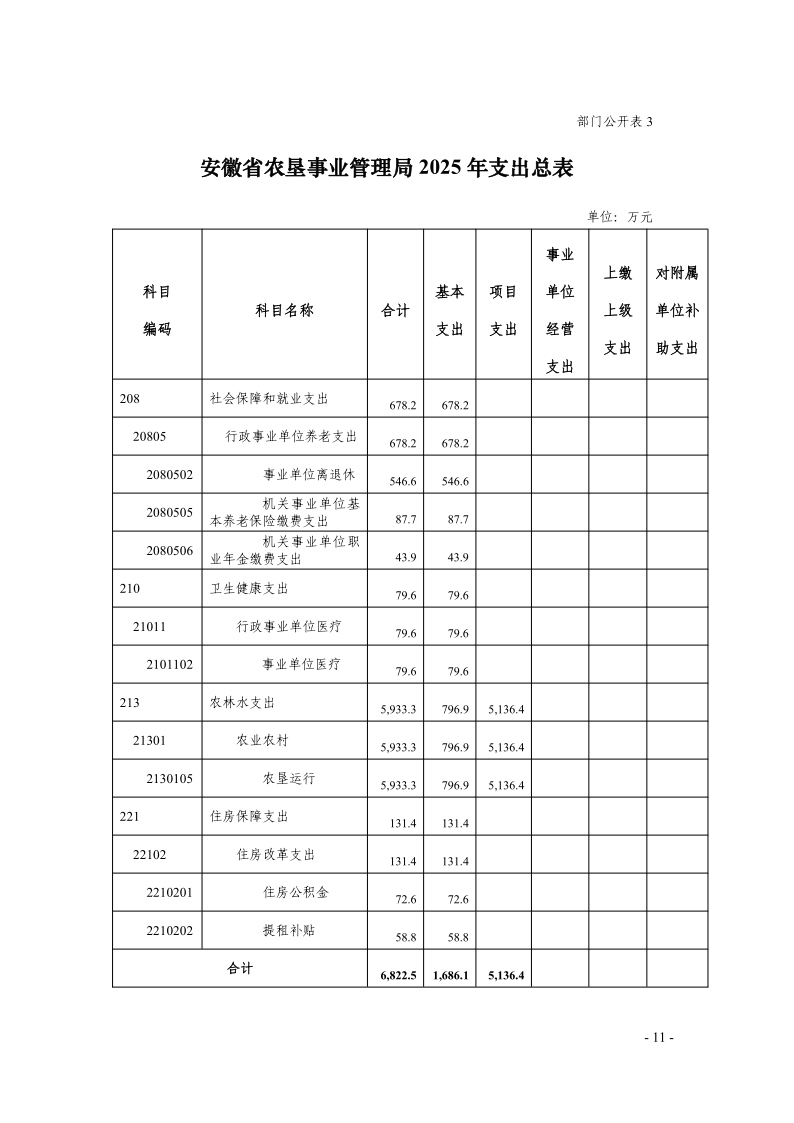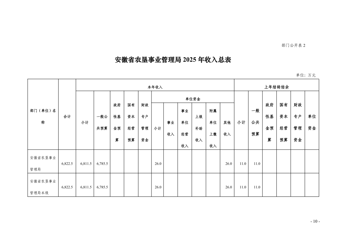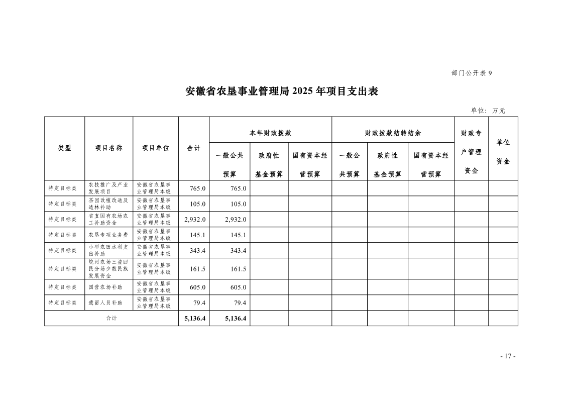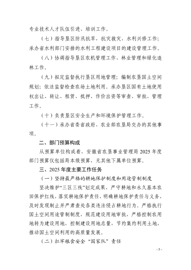 安徽省农垦事业管理局2025年部门预算