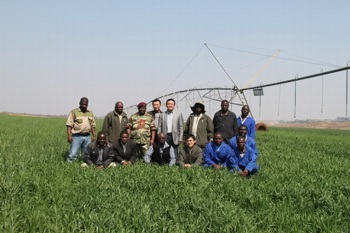 7月27日,津巴布韦农业部秘书长Masoka一行4人访问考察了皖津公司温亚尼和SISI农场,安徽农垦皖津农业发展公司董事长韩大鸣、副董事长D·伊柯阮姆巴将军、副总经理F·拓扎伊上校给予了热情接待。Masoka对皖津农场当前小麦长势表示赞许,认为,皖津公司经营团队管理工作扎实高效,经营计划脚踏实地,背靠中国巨大的供应市场,面向津国广阔的消费市场,开展多种经营的优势明显。Masoka表示,津国政府相关部门将积极配合并帮助皖津公司完备相关法律手续,他还就未来小麦销售提出了合理化建议。