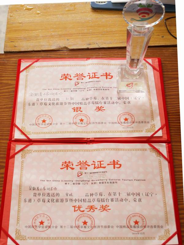 近日,第十二届中国草莓文化节在辽宁东港举行。水家湖农场选送“红颜”、“雪妹”2个草莓品牌参加“全国精品草莓擂台赛”,分别摘得银奖和优秀奖。(孙彩维)