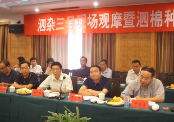 皖河农场是全省首批棉花良种补贴单位,由省农委采取招投标方式选择种子生产厂家后,按每亩15元标准直接将优质种子发放给农户。斯中军今年引进的棉花品种叫“泗杂3号”,这个品种是经全省棉花良种补贴品种统一招标的中标品种,具有高产、稳产、抗病、抗虫、结铃性强等特性。今年农场与江苏供种单位合作,引进了“泗杂3号”示范种植,目前长势良好,经测产,理论产量达330公斤左右。