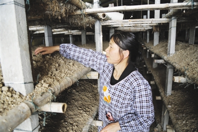 朱堂芝检查双孢菇菌丝生长情况