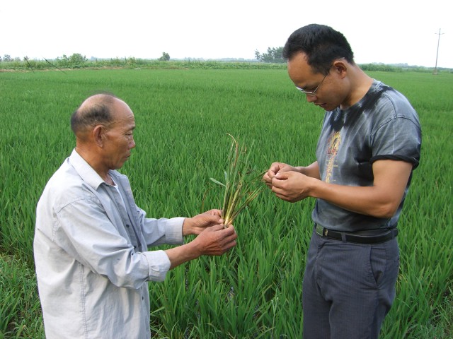 韩淼华立即赶到分场部反映情况,分场技术人员到现场查看后难辩病因,马上向总场植保站“报警”。一个小时后,农艺师程大强骑着摩托车从10几里外的植保站赶到田头“把脉问诊”,确诊吴子荣的水稻得了急性稻瘟病,正常情况下这种病在水稻分蘖期比较罕见。程大强根据病情开出“处方”,叮嘱农户务必按剂量喷施,并要求一旁陪同的队长韩淼华组织其他农户对附近田块也进行统防统治,以防病情扩散。