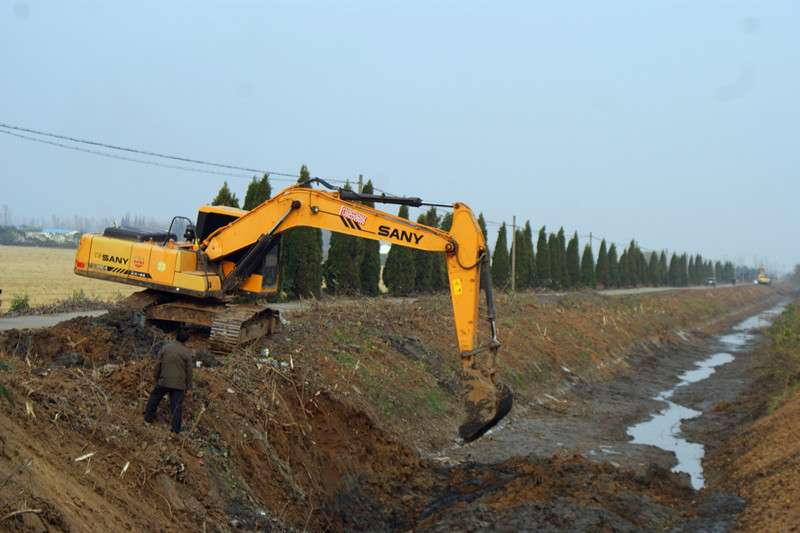 今冬明春,该农场将借助国家农业综合开发2014年高标准农田建设项目,投资780万元,实施农田综合治理工程。主要建设内容:加固衬砌灌渠11.64km,干支渠清淤24.67 km,配套渠系建筑物200座,新建干支道路5.49千米等。项目计划明春建成投入使用,这将从根本上改善农场西片区5个分场6700亩农田生产条件,进一步增强农业抗自然灾害风险能力,提高农业综合生产能力和综合效益。图为挖掘机现场作业场面。(夏庆芳)
