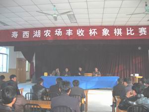 12月2日,全场职工“丰收杯”象棋比赛开始,拉开 了“两节”期间职工文娱活动的帷幕。场长、党委 书记刘国强作了动员讲话。他指出,开展健康向 上、喜闻乐见的文娱生活,能够陶冶职工情操,把 职工旺盛的精力引导到加快农场发展建设上来;通 过举办各类比赛活动,增强农场的凝聚力,增强广 大职工热爱农场、改变家乡面貌的信心。党委副书 记林庆年主持象棋比赛开幕式。随后,来自全场28 支代表队分组进行团体、个人比赛。