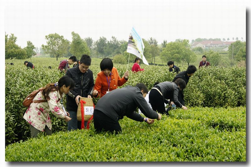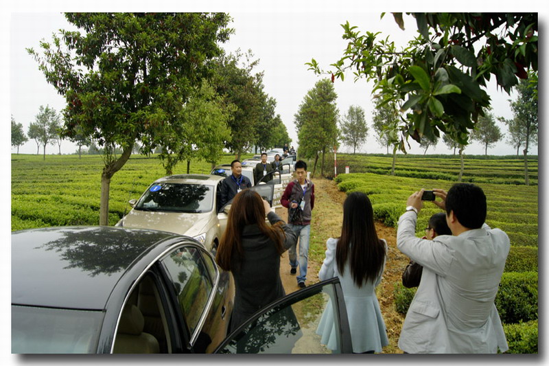 车友团一行驾驶着各色新款桑塔纳,开进宣城市郊的敬亭山风景名胜区,走进敬亭绿雪旅游观光“农家乐”休闲体验园,观赏茶园风光,亲手采摘鲜叶;前往敬亭绿雪茶业有限公司,现场观摩了名茶加工制作流程。在茶场会客室,他们一边品尝“敬亭绿雪”新茶,一边观看茶场制作的宣传片,悠然体味着历史文化名茶沁人心脾的独特馨香和皖垦茶业集团良好的发展前景。